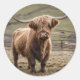 **"Furry Majesty: The Woolly Brown Highland Cow"** Classic Round Sticker
