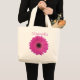 A large Fuschia Gerber Daisy really stands out on this tote bag and can easily be personalized with any name or text you choose.