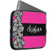 Fuschia pink black white zebra pattern heart name laptop sleeve