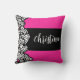 Fuschia pink black white zebra pattern heart name throw pillow