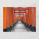 A couple walks hand in hand down the paths of Fushimi Inari temple in Kyoto, Japan.