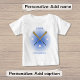This baby t-shirt features crossed baseball bats with three baseballs, and is ready for you to personalize with your baby's name. The accompanying caption in matching blue text is simply "Future baseball star" or you can customize this too.