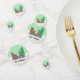 Start encouraging a love of science early with this biology themed set of wooden alphabet blocks featuring the nucleic acid sequence that makes up human telomeres. Mixed around the bases are blocks with a variety of microscopic and macroscopic icons to showcase some of the concepts and fields associated with biology, including a flower, a Petri dish, a bacteriophage, and a neuron. A pattern of paramecium in pale green on a spring green background creates a cute wallpaper to sit behind the white baseboard and tan carpet and sets a simple scene for the blocks. The large pieces of confetti have a sample message that you can customize to create a truly unique party decoration for your baby shower. This confetti will match with any other Future Biologist's Blocks product so that you can easily make your event as coordinated as you desire.
