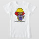 Cute girl wearing a yellow hard hat and holding a hammer and rope. For the construction worker or contractor of tomorrow. Text is customizable.