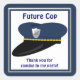 These cool square stickers are a great way to dress up your child's birthday party favors for their cop theme birthday party! Sticker features navy blue trim with a white center square. Center square has navy blue and silver trim. There is a navy blue police hat with yellow cording trim and a silver police badge. Above and below the police hat is text in navy blue font. The text can be customized to suit your needs.