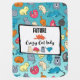 Cute baby blanket with the words: "Future Crazy Cat Lady" written in a trendy font inside a doodled style square. 4 cute cats below the text. Each cat has a unique personality. One is a cool cat with sunglasses and a tie, another is a sleepy cat, one is a staring cat, and one is a playful cat scrunched up in a box looking ready to pounce. A cute orange tabby laying on his back is in between the words. The background is a repeating pattern of adorable kitty cats.
