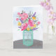 Celebrate with your Future Daughter-in-Law on Mother's Day with this pretty mason jar vase of flowers. Sitting on a table with a brown subtle blue striped table cloth. Watercolor looking flowers are soft and cheery for Mother's Day to your future daughter-in-law!