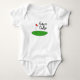Future golfer Baby Bodysuit for newborn child. Cute outfit for new baby boy or girl. Customizable design with golf ball, red flag and putting green illustration. Sporty gift for baby shower party. Golfing gifts for kids.