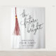 Celebrate your graduation in style with this fun, modern party backdrop featuring hand drawn illustration of a maroon tassel with typography text that says "the future is bright."