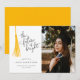 Modern and whimsical graduation photo announcement card featuring an illustration of a yellow tassel with a hand written typography text that says "the future is bright."