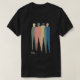 My 11 yo wore adult XL (5’7” 165#). The 8yo is small framed. She wore adult small and tied it in the back. Grandma wore adult large with long sleeve shirt underneath. Tall girl adult medium. Dark haired male adult large. Good quality dark Heather gray, Gildan brand shirt. -it was next up from basic choice and cost about $20 per shirt. Not too thick or thin. Washed and dried well, no major shrinkage. Not see-through. Can wear a bra under it fine. Screen print is just as shown and well done, front and back.
