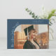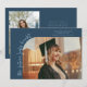 Modern and whimsical graduation announcement photo card featuring a photo on the front and 1 on the back. The text says "the future looks bright" in quirky hand writing. Add the graduate's name, information, and message to personalize this card. Navy blue.