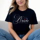 Cute and stylish black bridal t-shirt with white script Bride text and red heart can be customized with your "Future Mrs." name.