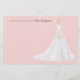 Personalized note cards with an illustrated bride. Many wedding gown, flower bouquets, hairstyles, and skin tones to choose from. Back of note card features a floral pattern.