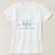 Future Mrs modern custom name t-shirt with the text Mrs in blue elegant script calligraphy. Simply add the married name of the bride to be and you'll have the perfect bridal shower gift. Exclusively designed for you by Happy Dolphin Studio.