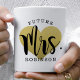 This glamorous Future Mrs mug features a large gold heart with expressive brush calligraphy Mrs. overlaid and Future arched above, paired with a custom last name beneath. The rich gold heart adds a luxurious, celebratory feel to the bold script design. The last name is fully editable. A stunning engagement gift, bridal shower keepsake, or bachelorette treat for the future Mrs.
