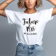 Claim your new title with this white tee featuring "Future Mrs." in bold black brush script with a customizable last name below. A fun, modern monogram tee for the bride-to-be to wear at engagement parties, bridal showers, bachelorette weekends, and everyday outings leading up to the big day. Customize the last name to make it personal. A thoughtful engagement gift she will love.