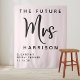 Minimal modern "The Future Mrs" personalized pale pink bridal shower photo booth tapestry. "Mrs" is written in a large elegant script, and you can personalize with your future married name, first name and shower date. The bottom corner is left blank for an area for your guests to take pictures.