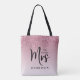Chic pink ombre "The Future Mrs" personalized tote bag to announce your engagement or as a fun gift for a friend engaged to be married. Sparkly faux glitter drips down the top of the bag, "Mrs" is written in a large elegant script and you can personalize with a name.