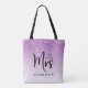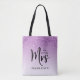 Chic purple ombre "The Future Mrs" personalized tote bag to announce your engagement or as a gift for a friend engaged to be married. Sparkly faux glitter drips down the top of the bag, "Mrs" is written in a large elegant script and you can personalize with a name.