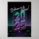 Embrace the cosmic visionary look with this futuristically-themed poster featuring glowing '2025' text and a serene starry backdrop. It's an eye-catching blend of neon hues and cutting-edge artistry.