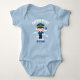 This personalized baby t-shirt depicts a cute boy pilot character standing on a cloud with an airplane ascending into the sky behind him.