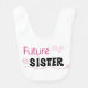 Future Sister bib of white with black and pink text and pink flowers, reads Future Sister.