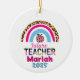 Lightweight, smooth, pure white ornament with nice sheen. Perfect size to be seen from across the room ... and to attract closer inspection! Price was great for ordering enough for the whole family! Clear, bold black design just as requested. Matches the order exactly. Just so nice!