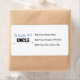 Future Uncle keepsake boxes, tiles, ornaments, notebooks, mugs, magnets, cards, buttons, hoodies, keychains, and other future uncle apparel and gift items with a blue and black text and star design.
