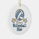 A light blue and white volleyball with shooting stars that says Future Volleyball Star on volleyball apparel, clothes, shirts, stationery, buttons and more. A cute gift for the sibling, baby, child or kid of an indoor or beach volleyball player or coach of a girls, women's or men's volleyball team .