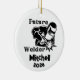 Lightweight, smooth, pure white ornament with nice sheen. Perfect size to be seen from across the room ... and to attract closer inspection! Price was great for ordering enough for the whole family! Clear, bold black design just as requested. Matches the order exactly. Just so nice!