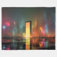 Futuristic Cityscape with Neon Reflections Fleece Blanket