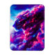 A powerful cosmic leopard emerging from vibrant clouds of neon pink, electric blue, and deep violet.