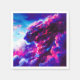 A powerful cosmic leopard emerging from vibrant clouds of neon pink, electric blue, and deep violet.
