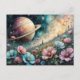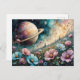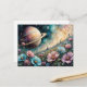 Saturn like planet, a futuristic cityline and a field of cosmos
