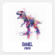 Futuristic Glitch T-Rex Dinosaur With Kids Name Square Sticker