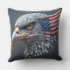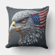 A futuristic metallic eagle head with a floating American flag, rendered in stunning 3D detail and shine.