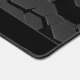 Stylish desk mat with neon lights and neon lines as futuristic black hexagonal shapes pattern for modern and elegant offices.