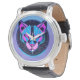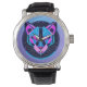 Futuristic Neon panther Face in Geometric Art Watch