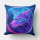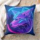 Futuristic Neon Wolf Face in Geometric Art Throw Pillow