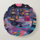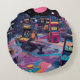 Futuristic Retro Arcade in Outer Space Round Pillow