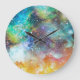 Futuristic space, starry nebula background. large clock