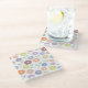 Fuzzy Flower Lg Pattern Pastels on White Glass Coaster