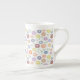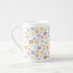 Fuzzy Flower Rpt Pattern Pastels on White Bone China Mug