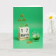 This card shows a modern St. Patrick’s Day still life set on a bright green surface, where a white calendar sits in the upper left like a neat little date marker. The calendar reads “17 March” in dark lettering, and three fuzzy shamrocks rise from it, their stems leaning close together as if they’re sharing a quiet secret 💚. To the right, a clear glass packed with ice holds an emerald-green drink, with glossy highlights that make it look cool to the touch. Beneath the glass, a shiny gold Bitcoin coin rests on the green ground, adding a current-day twist beside the traditional clovers ☘️. The background stays a single green tone, leaving plenty of open space so each object feels placed with care. The lighting is soft and even, catching the shamrocks’ texture and the drink’s reflective surface without harsh shadows. A few crisp ice cubes are visible through the glass, and the coin’s ridged edge glints against the smooth green backdrop.