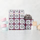 Illustrated pattern design using fluffy cross stripes in red, simple black flowers and white fluffy square shapes; a whimsical twist to a classic square pattern by Contemporary Artist, Kim Niles. ©️Kim Niles, KiniArt™️ - All Rights Reserved
