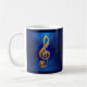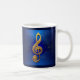 The G or Treble clef in gold, with a sprinkling of tiny notes around it, image created with artificial intelligence. Express the musical essence of you whenever you sip your cuppa from this mug..