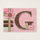 G monogram with girl tag and dot ribbon and scalloped trim binding edge with novelty trims and applique-look flower with button.