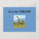 "G" is for Giraffe Alphabet Flashcard Postcard