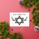 This elegant gold foil card features a Star of David accented with olive branches, symbolizing peace, reflection, and renewal—perfect for sending heartfelt wishes on Yom Kippur.
